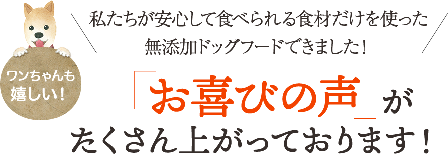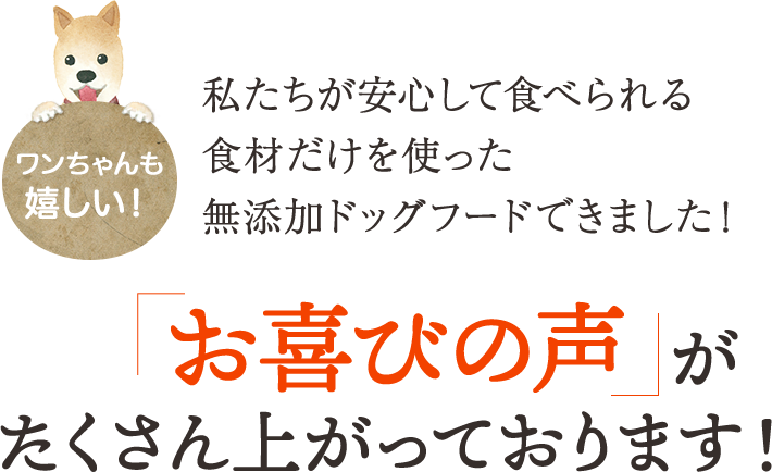 大切な愛犬のすこやかさのためには、どんな妥協も許さない。自然の恵みをそのまま活かした、安心でおいしいできたてフードをお届けします。