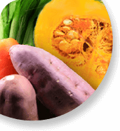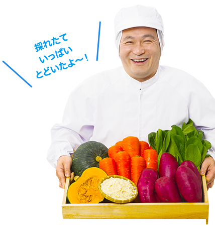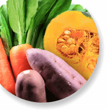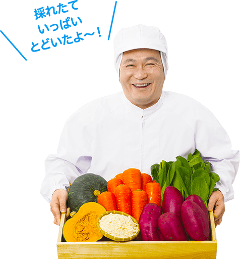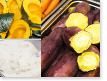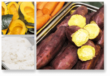 さつまいも、カボチャ、にんじん、小松菜など国内産を中心に使用。栄養価やおいしさが高まる〝旬〟の野菜を厳選しています。