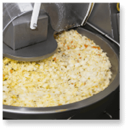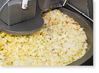 蒸しあがった野菜と炊いたお米を細かくカットし、