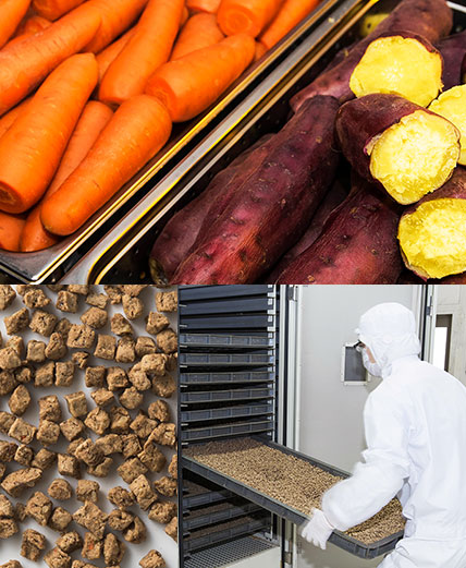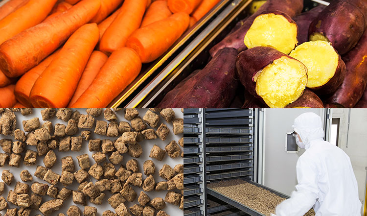食材を蒸して、刻んで、高熱を加えず、低温風でじっくり乾燥。