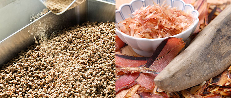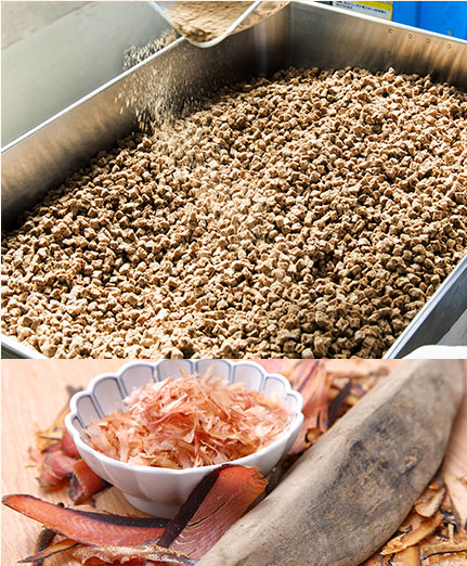 生おからや国産小麦粉、鰹節粉・鰯粉などと一緒に、