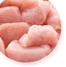 富士山麓の自然に育まれた「健味どり」などの国産鶏肉を使用。高タンパクなむね肉を主原料にし、脂肪の多い皮は取り除いています。